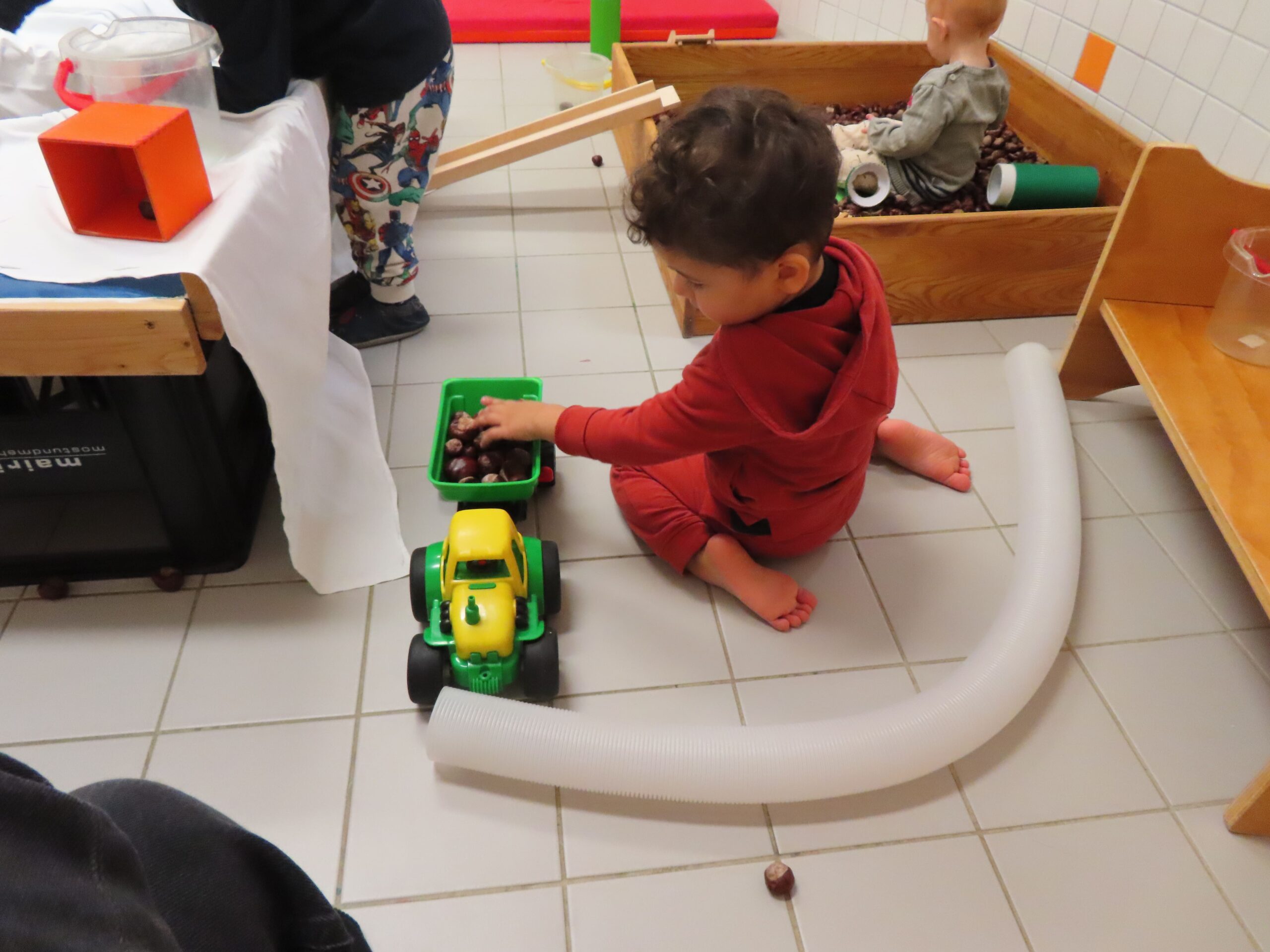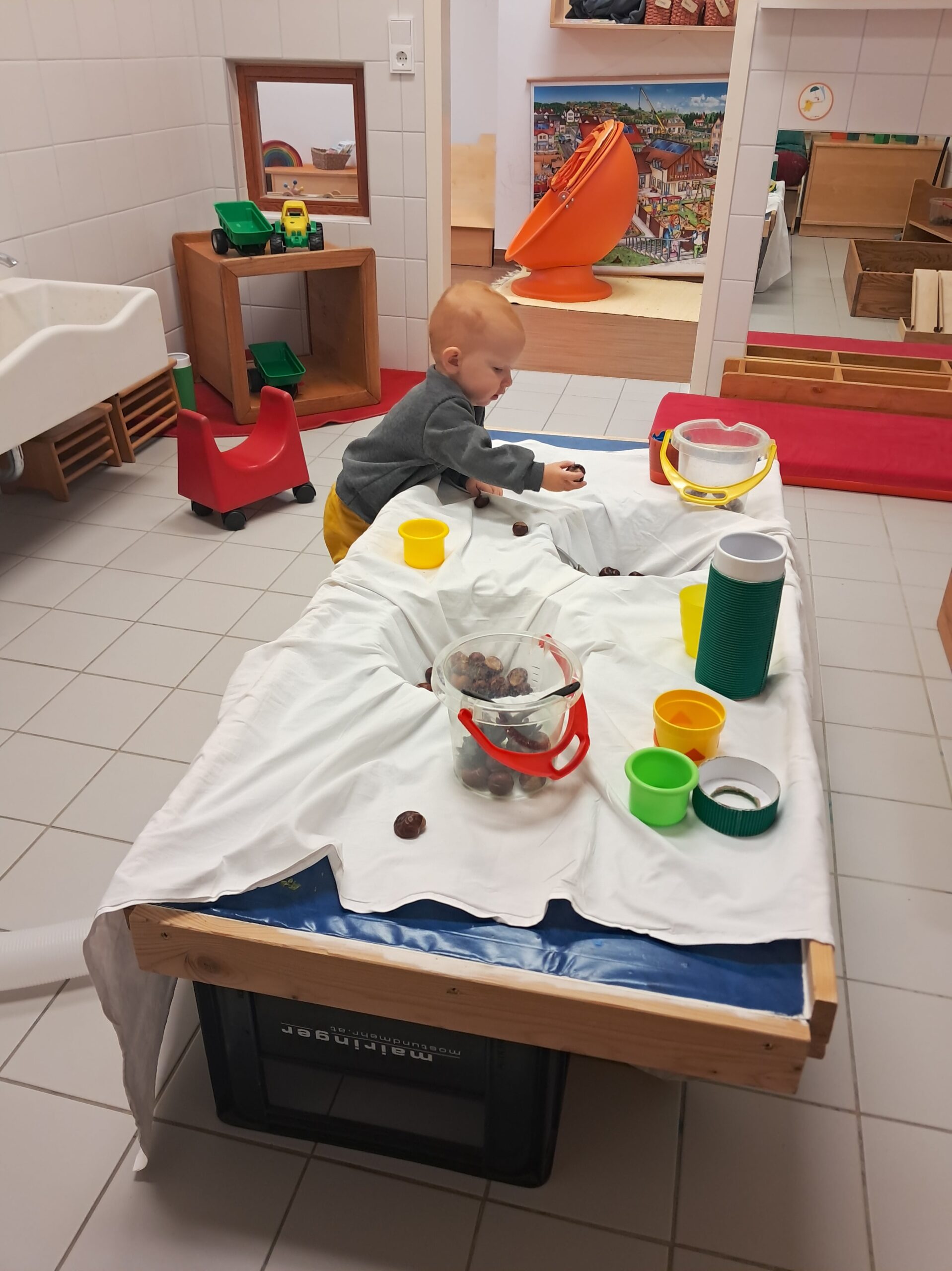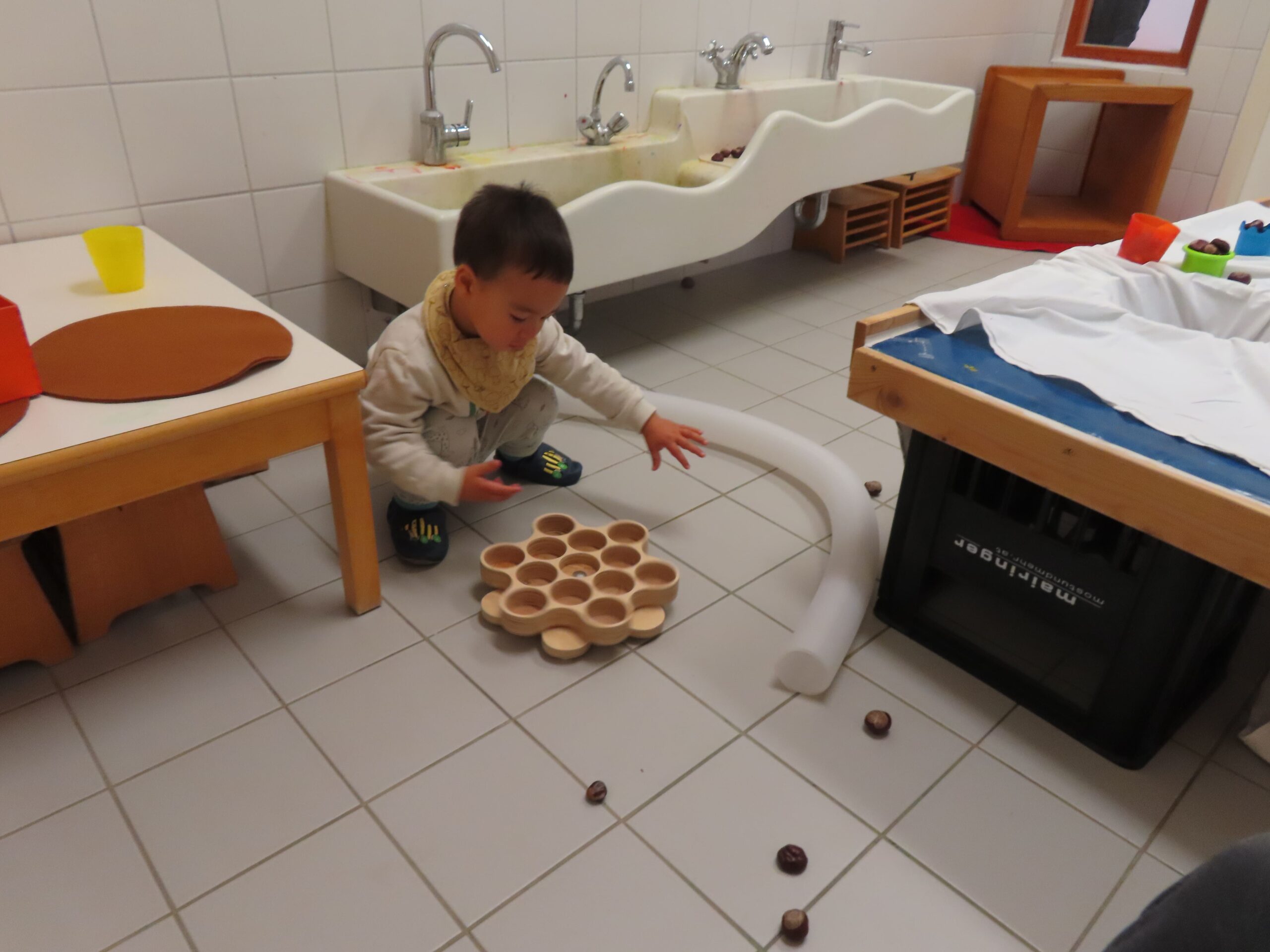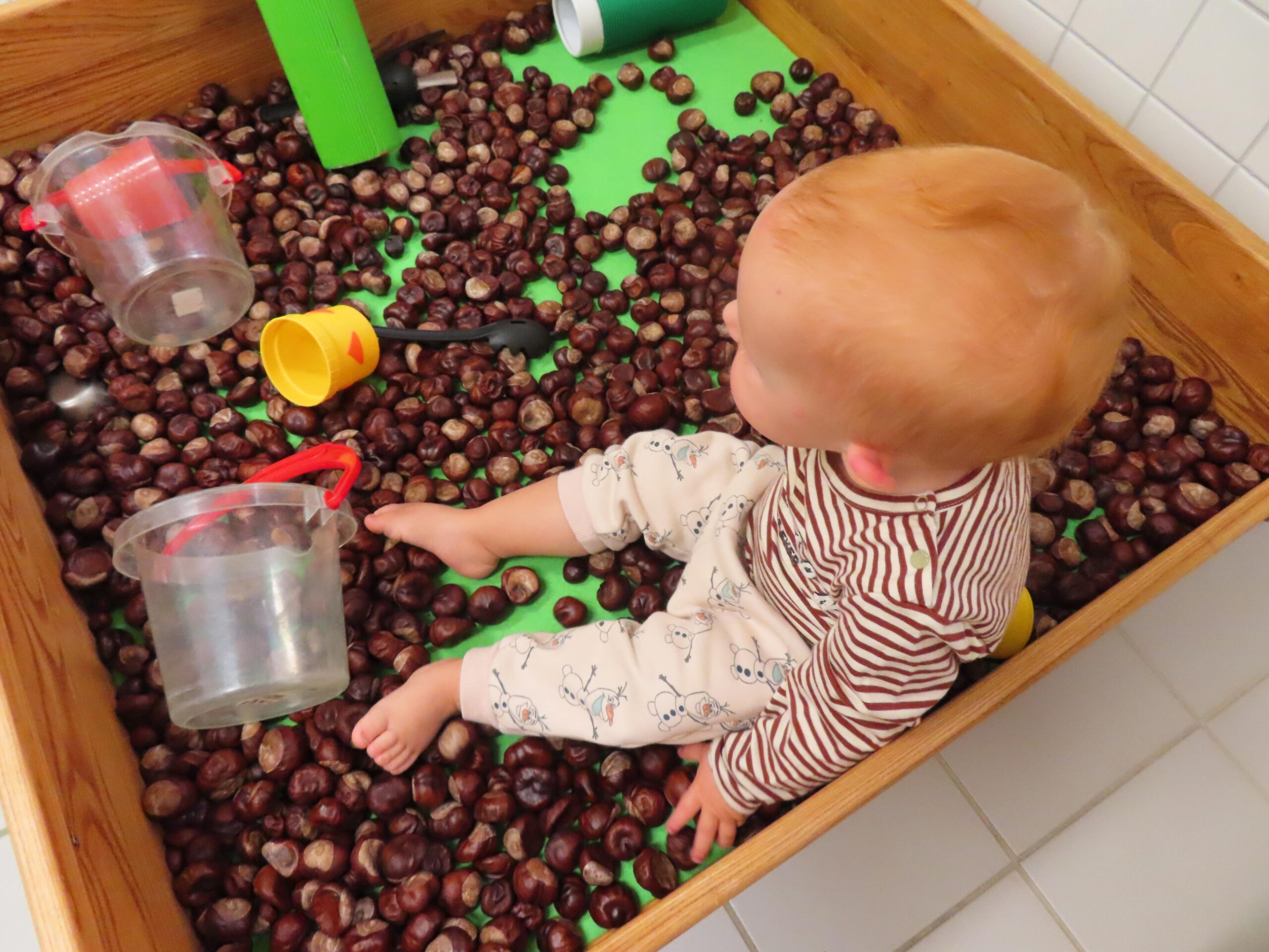 Das Atelier im UG wird im November zu einer einladenden Kastanienwelt umgestaltet. Sie gibt den Kindern Raum und Zeit,