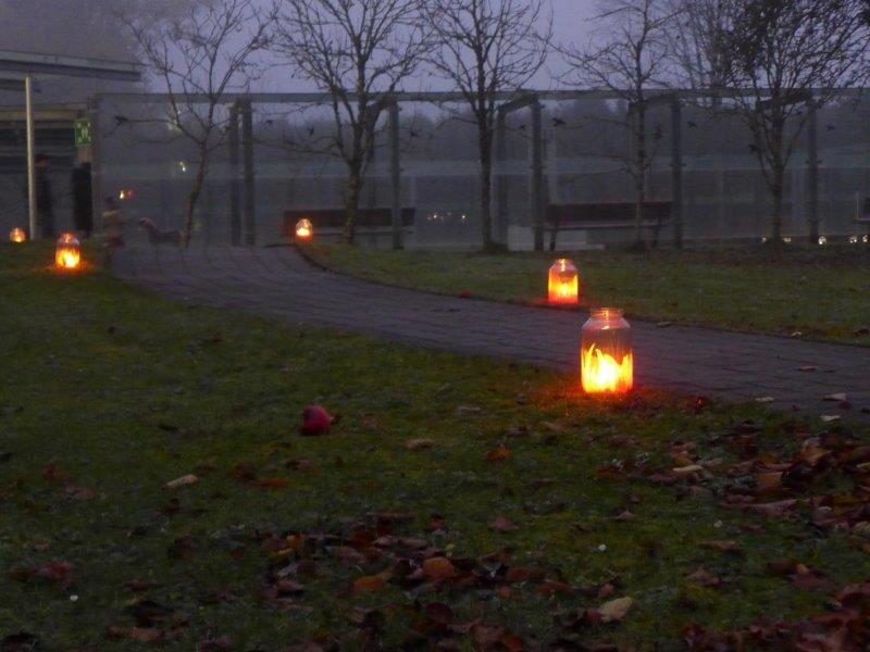 Ein laternengesäumter Weg führte die Familien am Abend zu den von den Kindern gestalteten Laternen, welche stimmungsvoll bereits eingeschaltet in einer Kreisform aufgestellt waren.