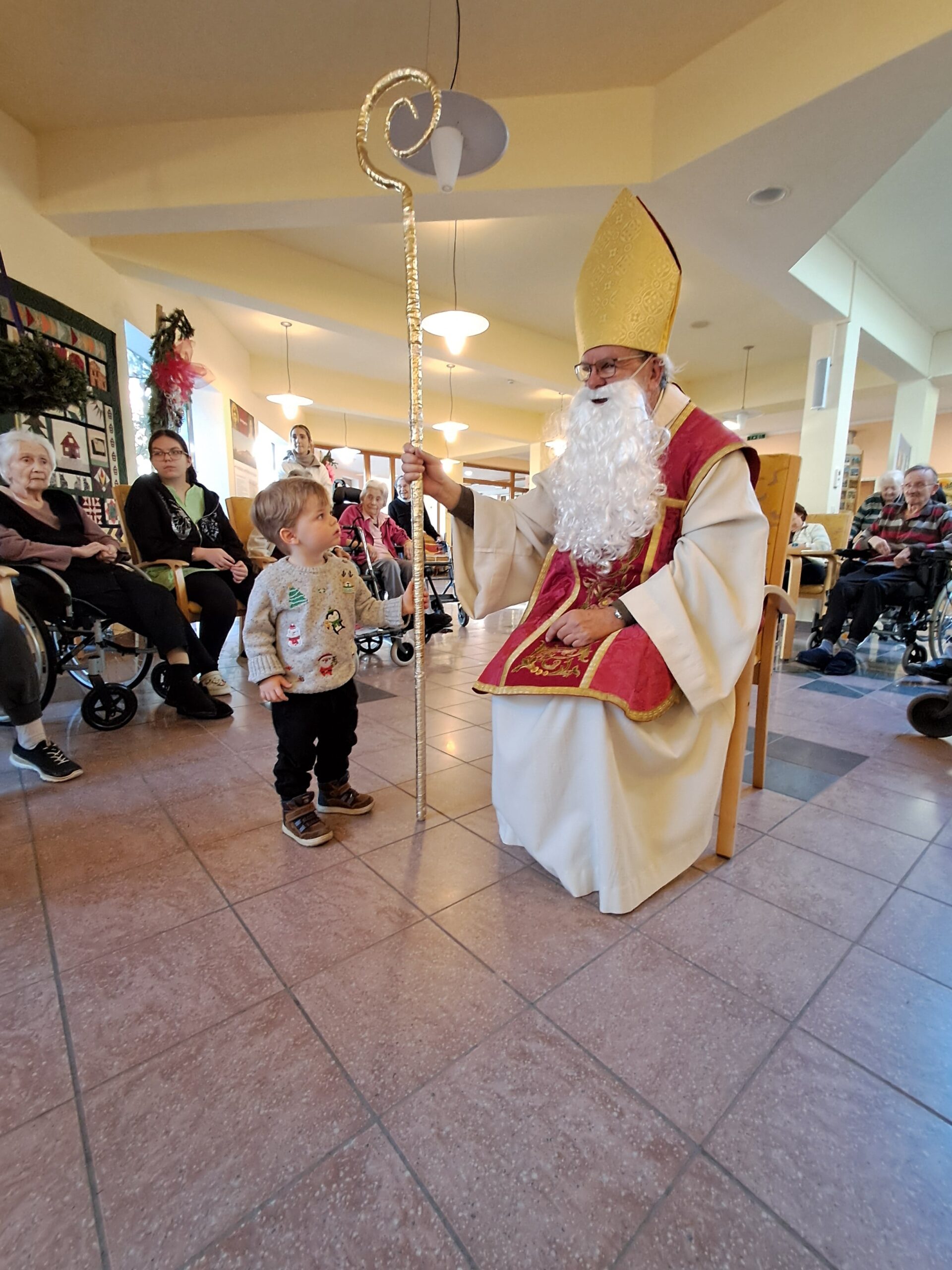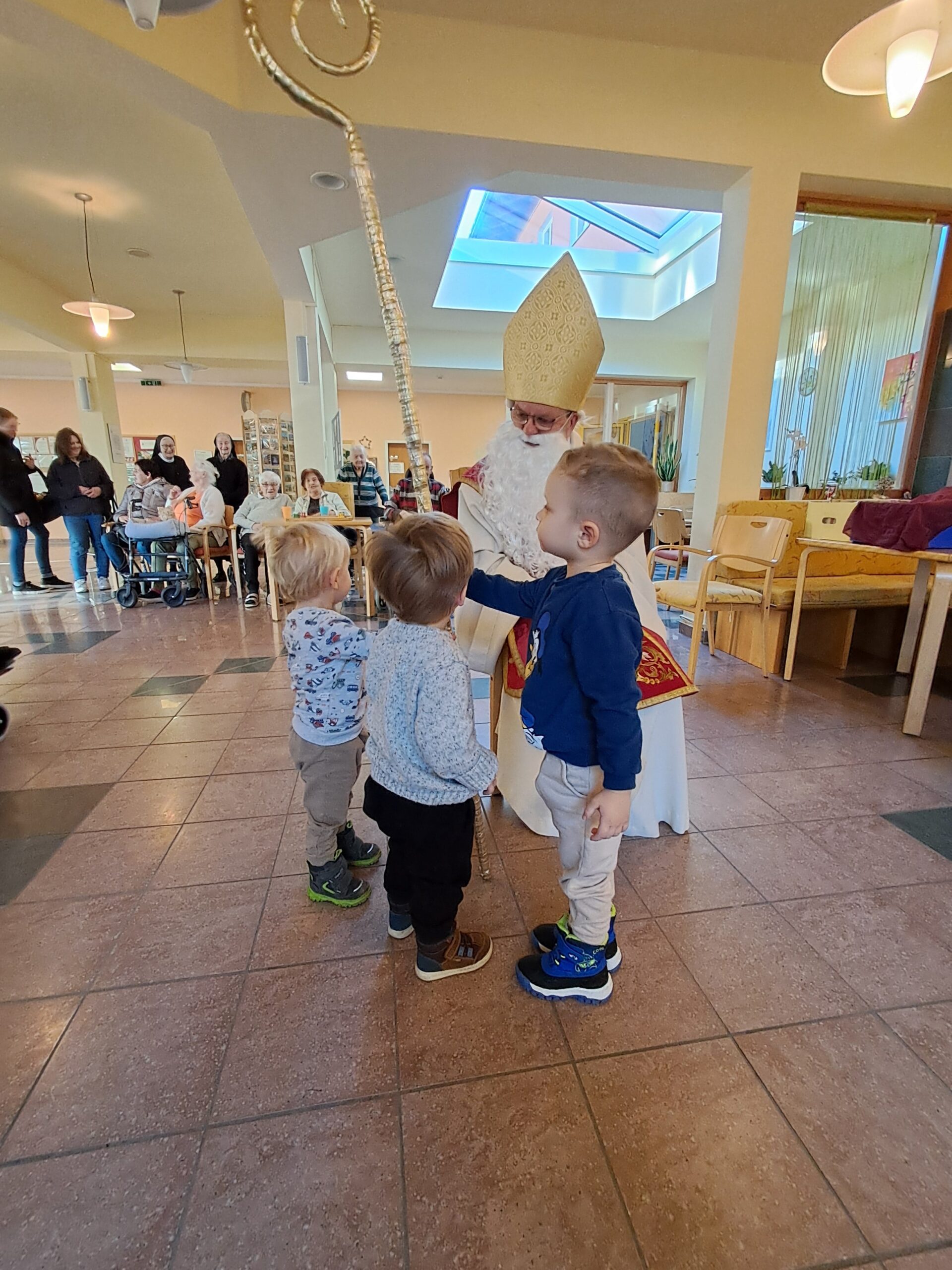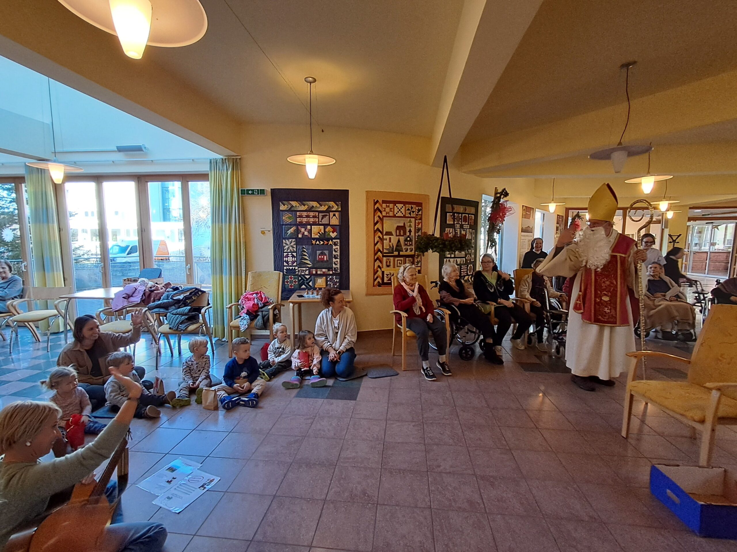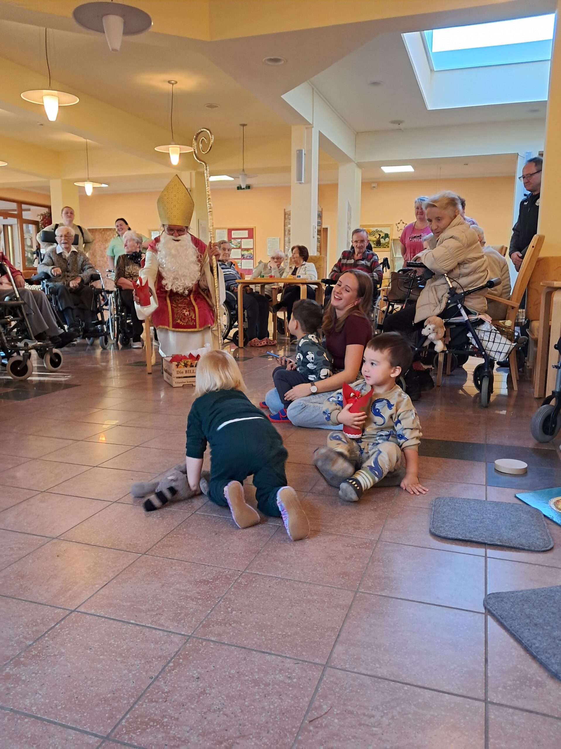 Gemeinsam mit einigen Bewohnern des St. Klara Heimes warten die großen Kinder unserer Krabbelstube gespannt auf den Besuch des Hl. Nikolauses.