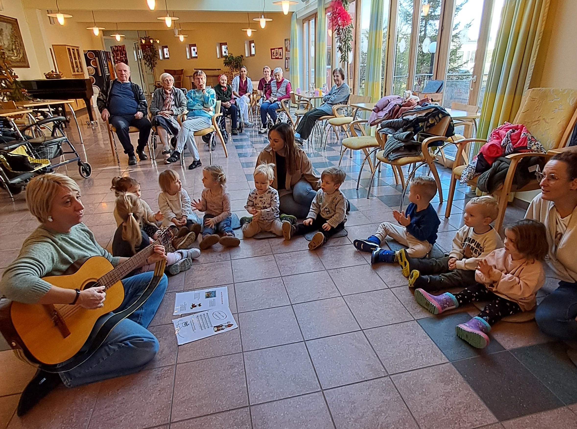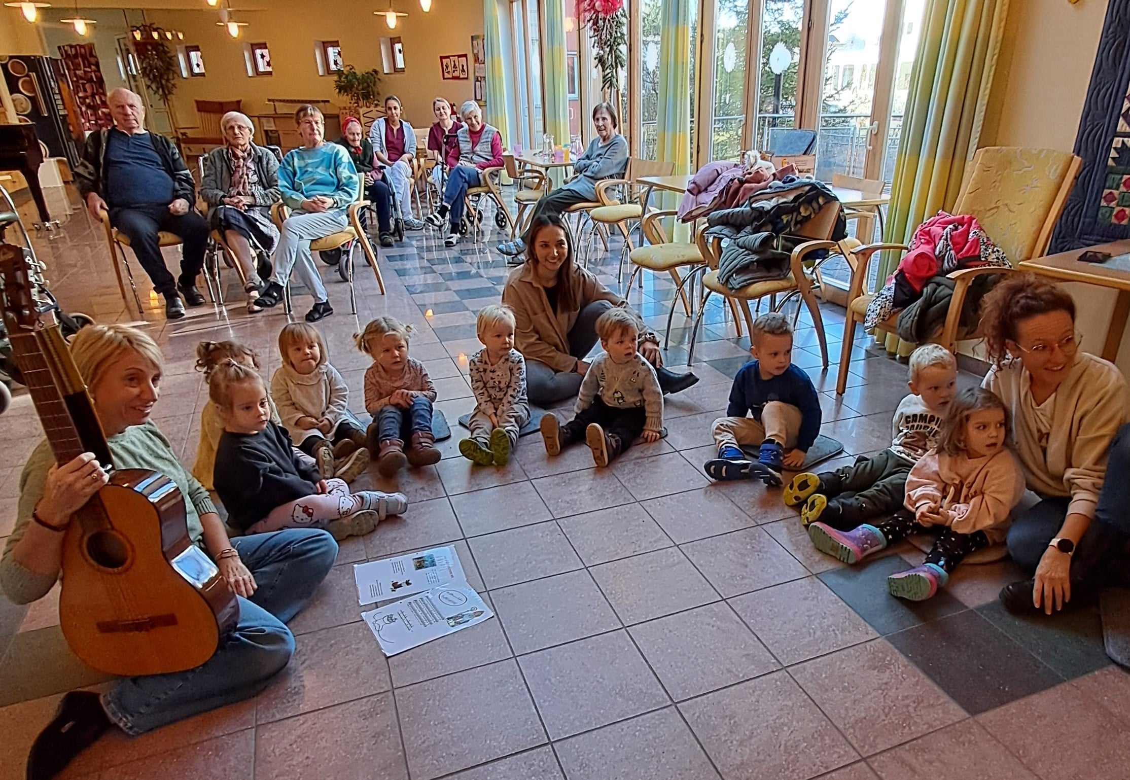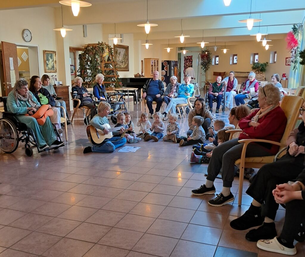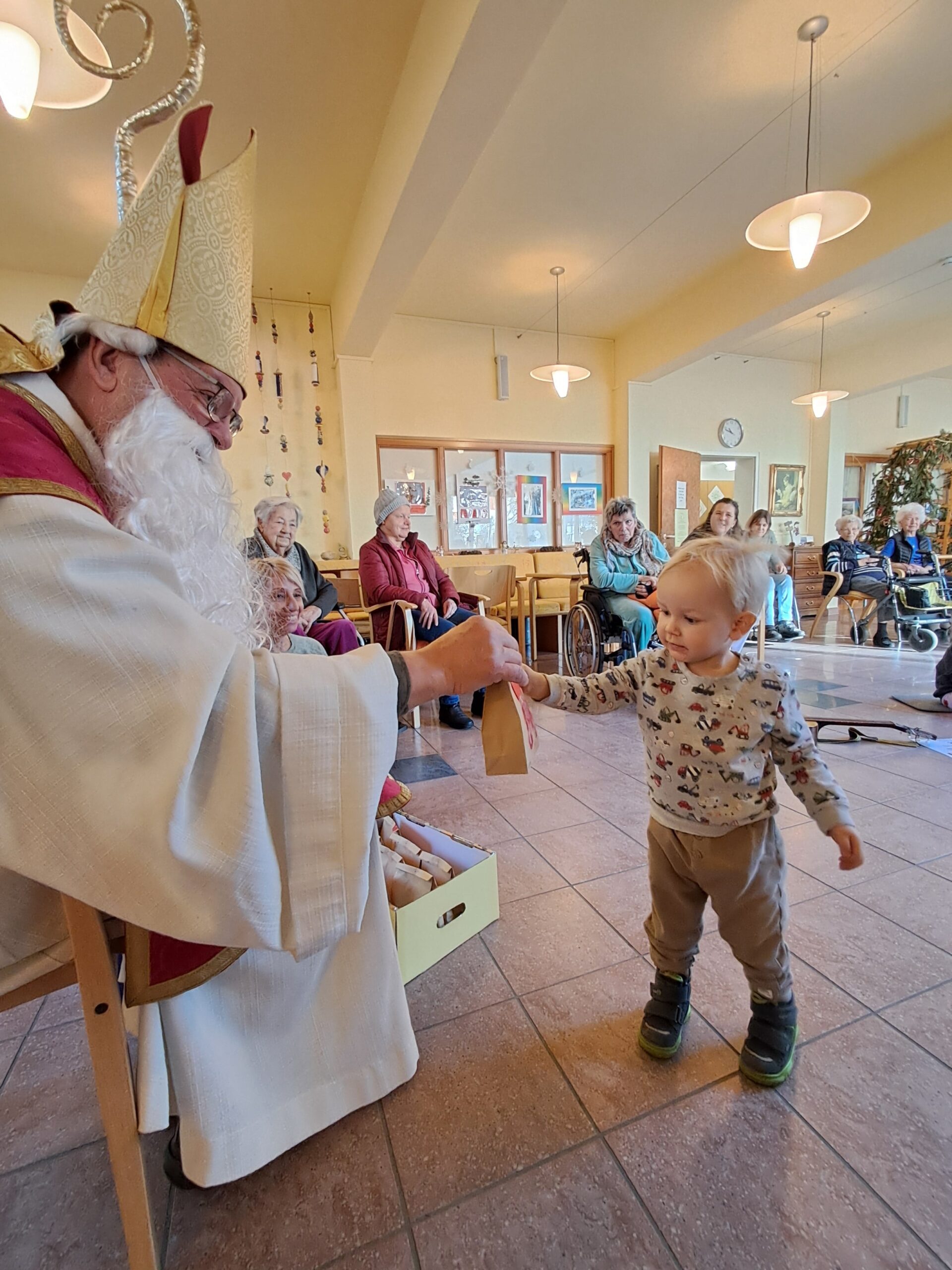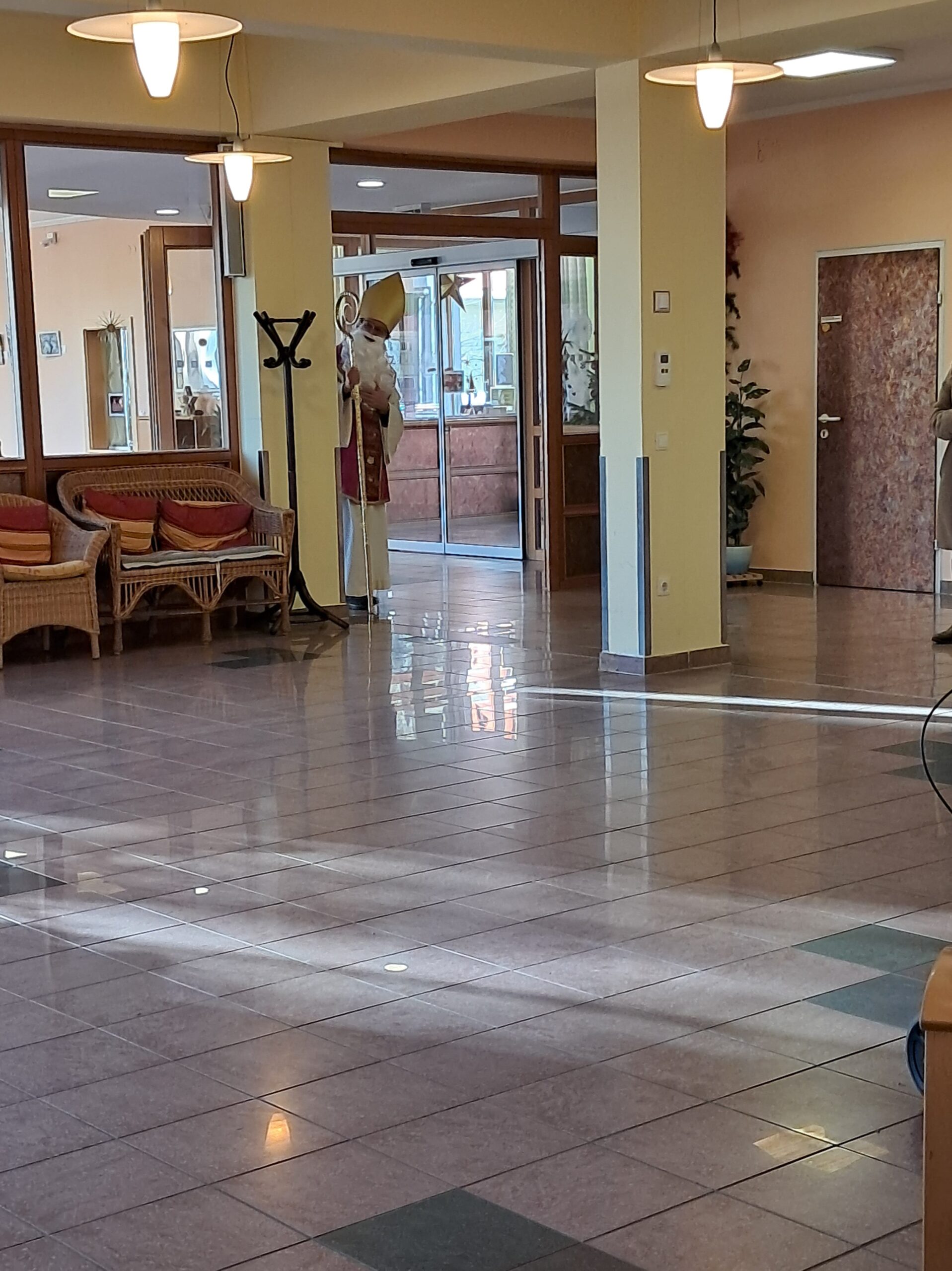 Gemeinsam mit einigen Bewohnern des St. Klara Heimes warten die großen Kinder unserer Krabbelstube gespannt auf den Besuch des Hl. Nikolauses.