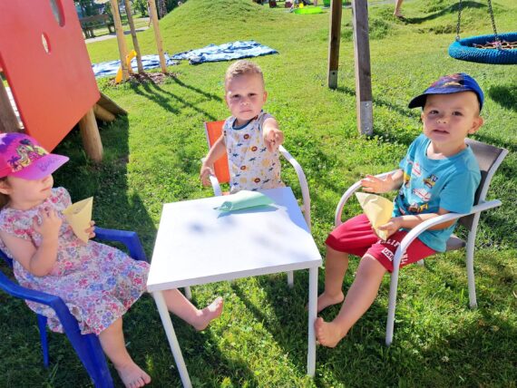 Am Tag unseres Gartenfestes gehen wir gleich in der Früh in unseren bunt dekorierten Garten. Dort warten heute viele aufregende Aktivitäten auf die Kinder. Riesenseifenblasen, eine Popcornmaschine, Straßenkreiden, bunte Kegeln und zum ersten Mal Wasser im Garten. Auch bei unserem Schotterbereich rinnt heute Wasser durch die Wasserrinne. Das ist ein Spaß! Gemeinsam mit den Kindern…